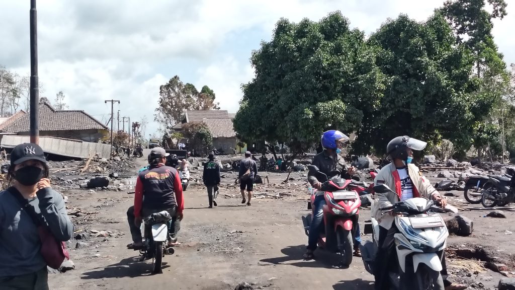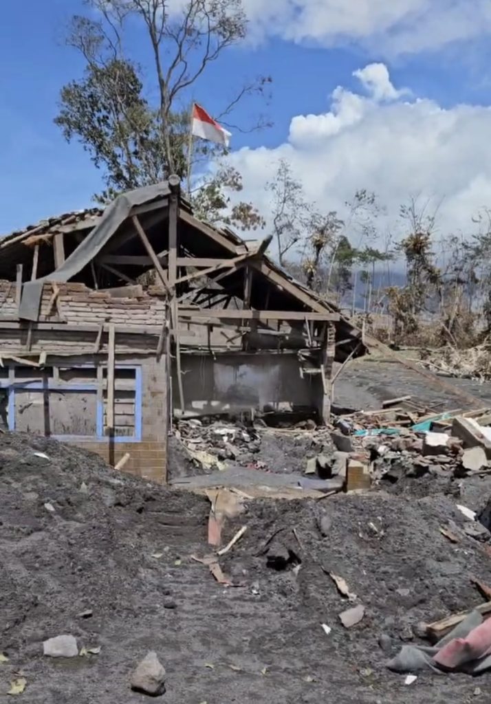 Pagi-pagi sekali, kami memulai perjalanan menuju lokasi bencana. Kali ini, kami ditemani Pak salim salah satu relawan yang dengan sabar menunjukkan jalan, membawa kami menuju titik-titik terparah yang terdampak erupsi. Begitu kami memasuki area tersebut, rasa cemas dan harapan berbaur menjadi satu. Kami langsung disambut dengan pemandangan yang memilukan: rumah-rumah yang hancur, tertutup abu vulkanik dan pasir, serta jalanan yang sulit dilalui. Setiap langkah kami terasa berat, namun kami tahu bahwa tugas yang harus kami jalankan sangat penting.