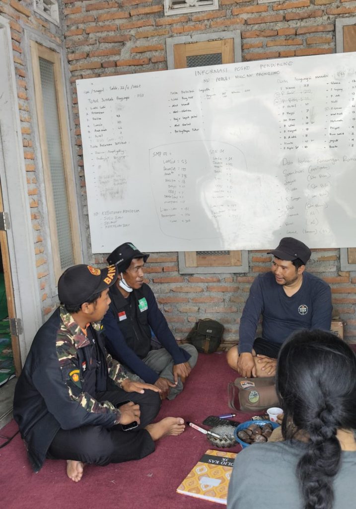 Setelah selesai melakukan pendataan di beberapa titik, kami memutuskan untuk membawa sejumlah paket sembako yang telah kami persiapkan sebelumnya di Surabaya. Kami ingin memastikan bahwa bantuan yang kami bawa bisa langsung digunakan oleh warga yang membutuhkan. Oleh karena itu, kami sepakat untuk menyerahkan sembako itu kepada dapur umum NU Peduli Semeru, yang pada saat itu tengah mengelola distribusi makanan untuk para pengungsi. Dengan cara ini, kami berharap bantuan kami bisa sampai ke tangan lebih banyak orang dan bisa dimanfaatkan secara merata oleh seluruh warga yang terdampak.